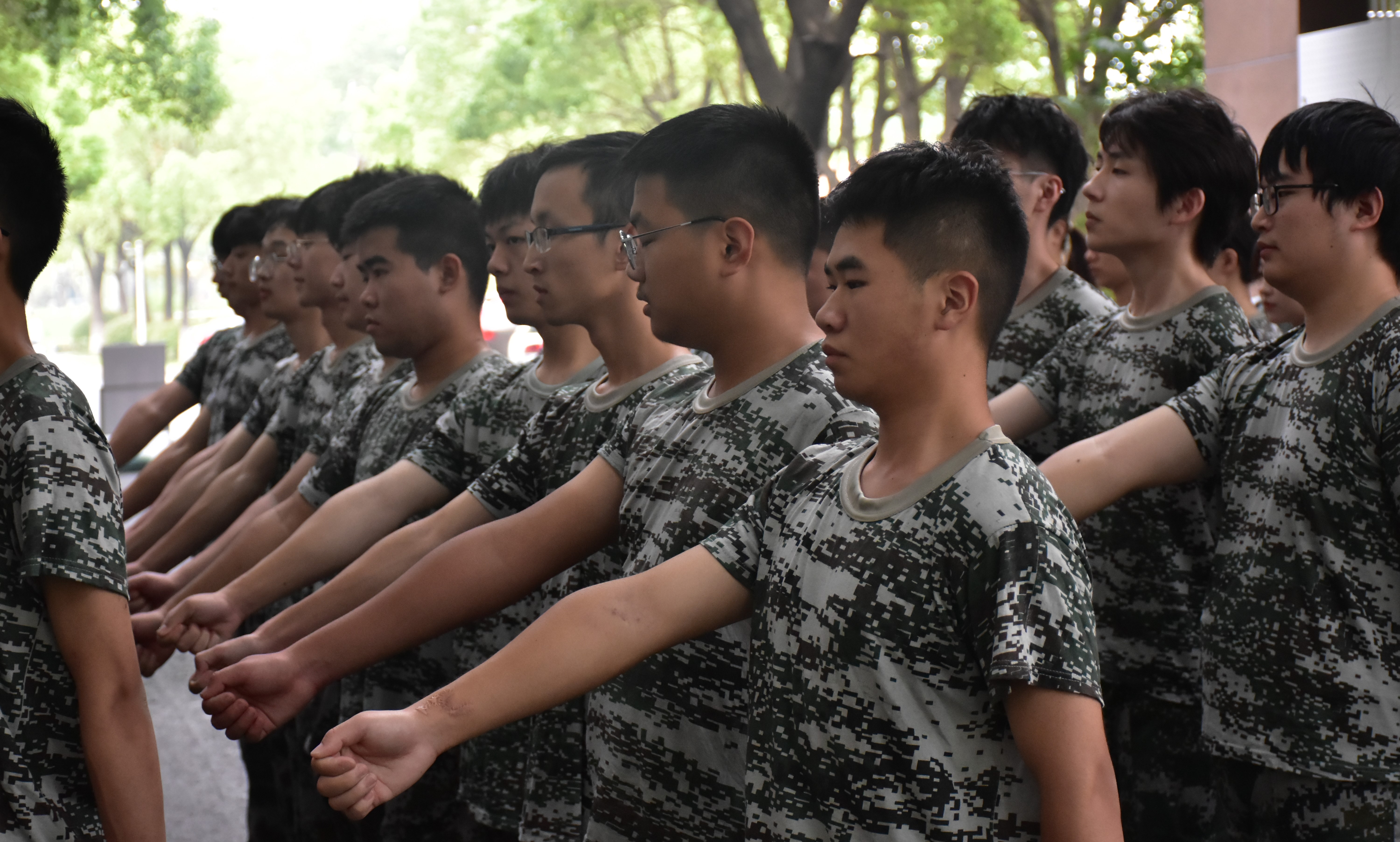 军训拉开帷幕,全体教官以身作则、言传身教,以高标准严要求培养学生坚毅团结的品质;同学们以昂扬奋进的精神面貌,展现出对军训的重视与期待。教官依次教授跨立、坐下、蹲下等口令动作,同学们认真谨慎,力求动作规范。口令掷地有声,口号铿锵有力,展现出城建学子雄姿英发、虎虎生风的气势;坚韧挺拔的军姿,整齐划一的步伐,见证了他们自强不息、顽强拼搏的蜕变。在军训中,他们相互鼓励、互相扶持,学会了更好的与他人合作;他们不惧风雨,不畏困难,坚定信念,砥砺前行,圆满地开启了军训任务。