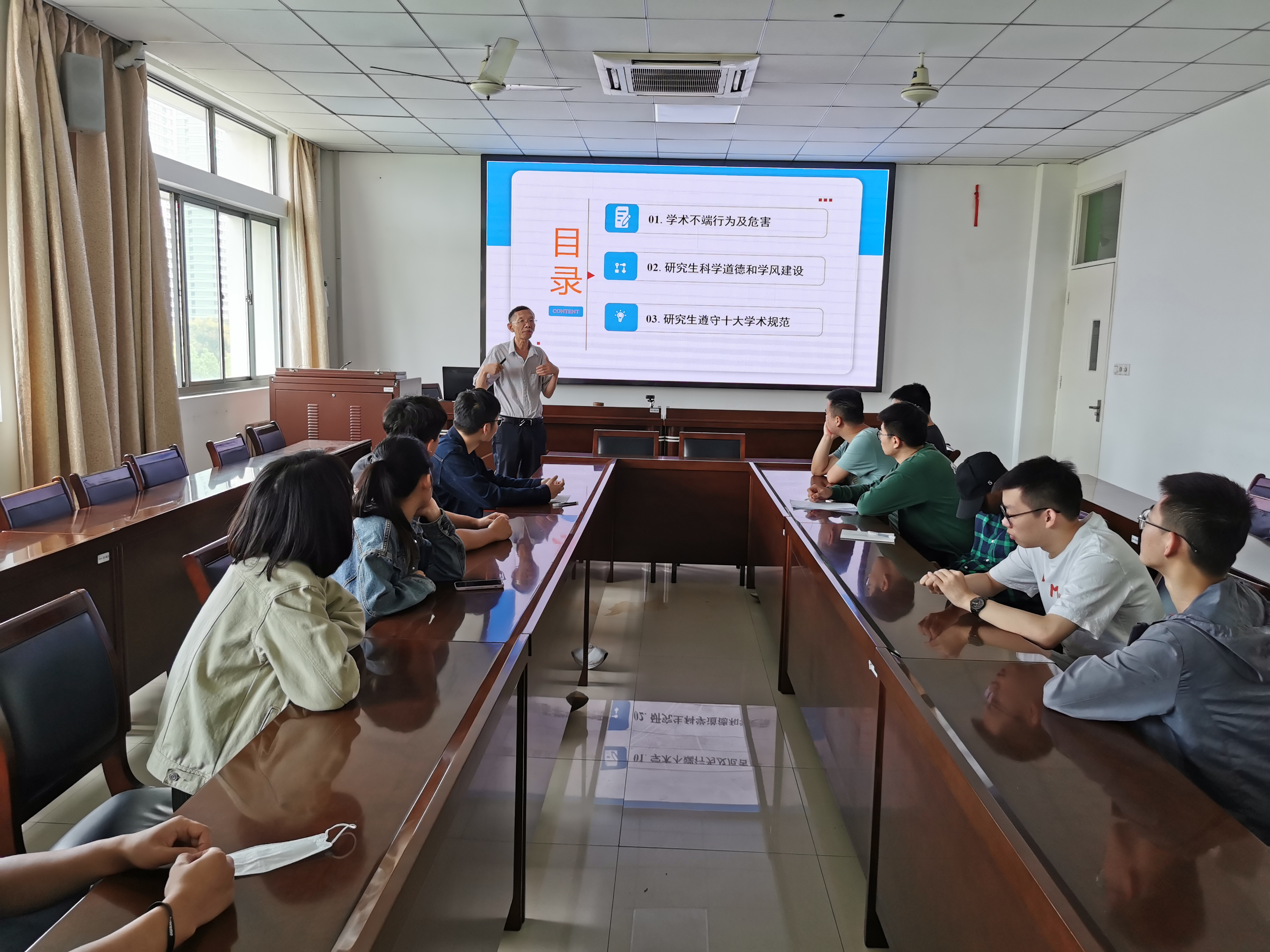 为不断提高研究生新生思想品德修养,增强爱国主义情怀和加强科研诚信教育,9月24日上午,吃瓜网 在明行楼341会议室为学院2022级全体研究生新生举办了“入学第一课”的讲座。此次讲座由吃瓜网 党委书记乔元明和院长朱平华担任主讲,讲授的主题分别为“立志勤学,做德智体美劳全面发展的社会主义建设之和接班人”和“科学道德与学风建设”。