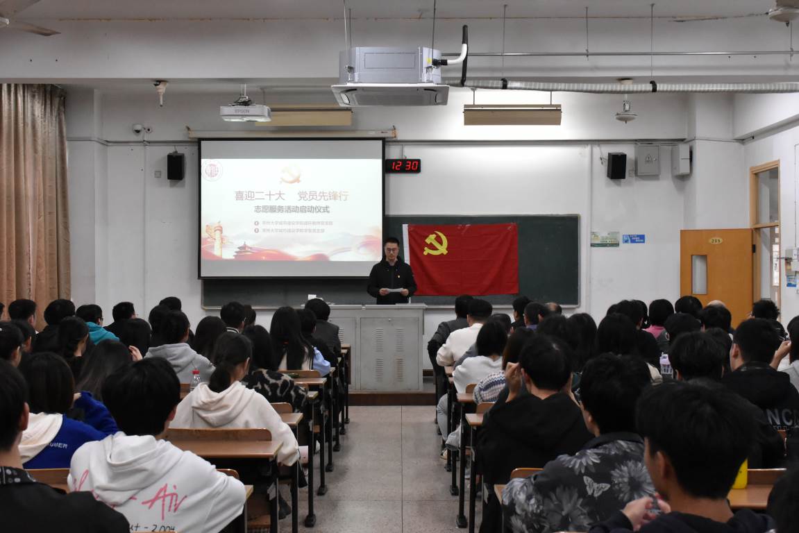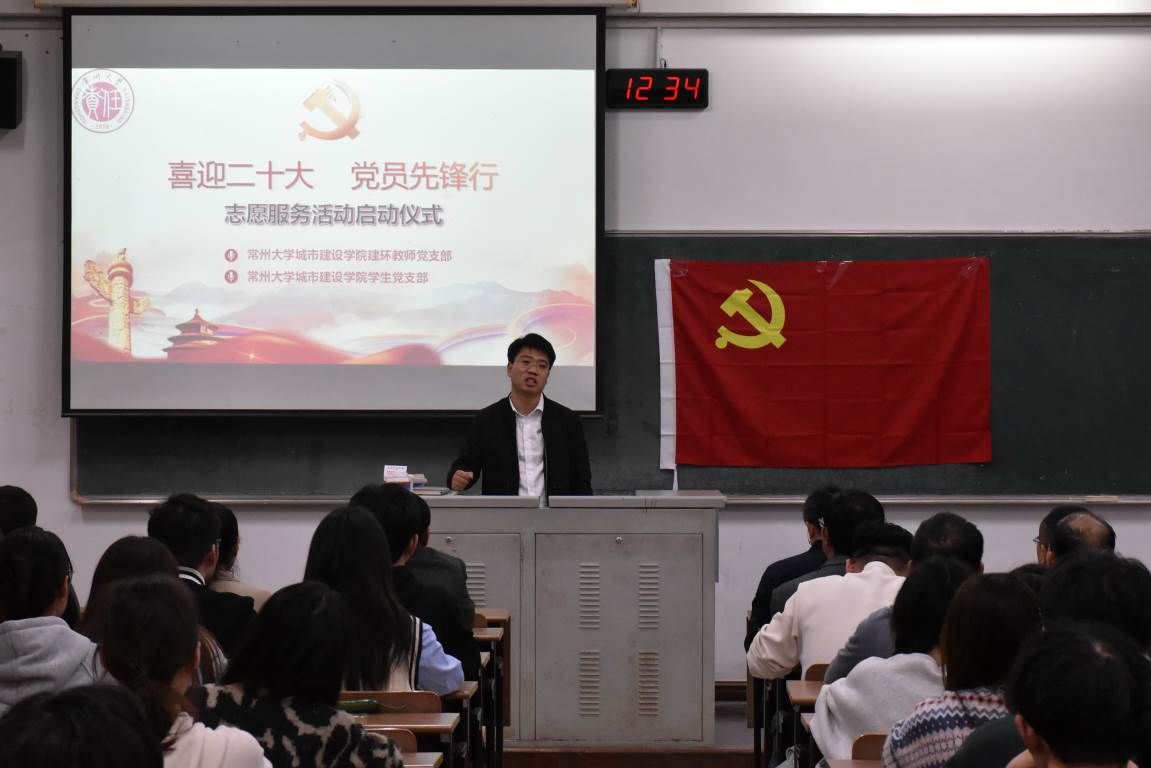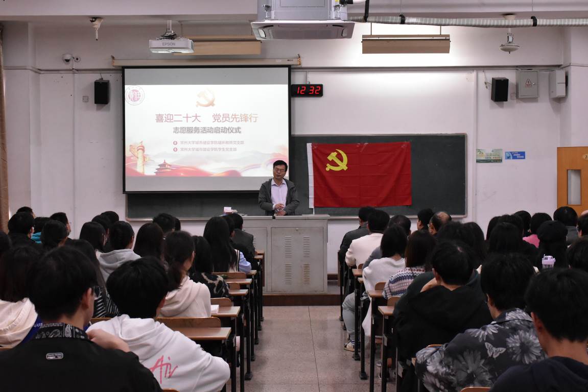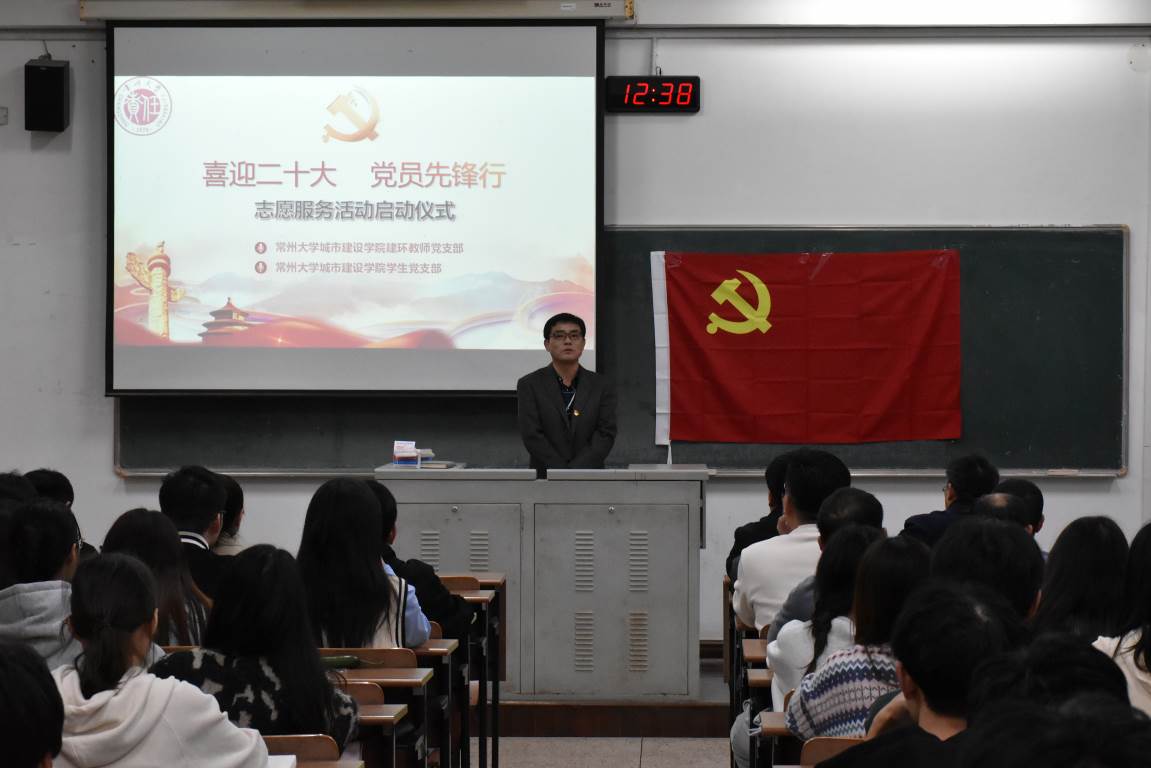 金秋迎盛会,共启新征程。为迎接党的二十大胜利召开,深入弘扬志愿服务精神,教育引导广大师生坚定初心跟党走,建功立业新时代。吃瓜网 特举办以“喜迎二十大,党员先锋行”为主题的志愿活动启动仪式。活动于2022年10月21日在W1213教室举行,由院学生党支部第一支部副书记王发静主持,院党委副书记顾坚,副院长王新杰、许霞,院长助理杜尔登、陈春红、周年勇,建环专业负责人郭强,建环专业教师、教师党支部及学生党支部的全体党员出席活动。