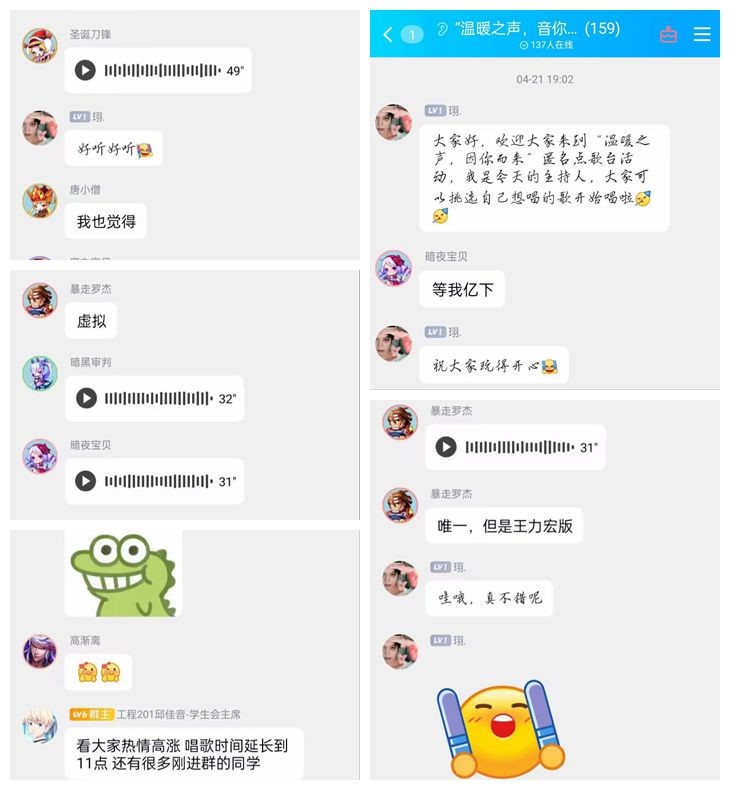为丰富校园文化生活,给予学生展示才华的舞台,展现大学生朝气蓬勃、奋发向上的精神风貌。4月21日晚,吃瓜网 于线上QQ群举办“温暖之声,音你而来”匿名点歌台活动,共计170名城建学子参加此次活动。