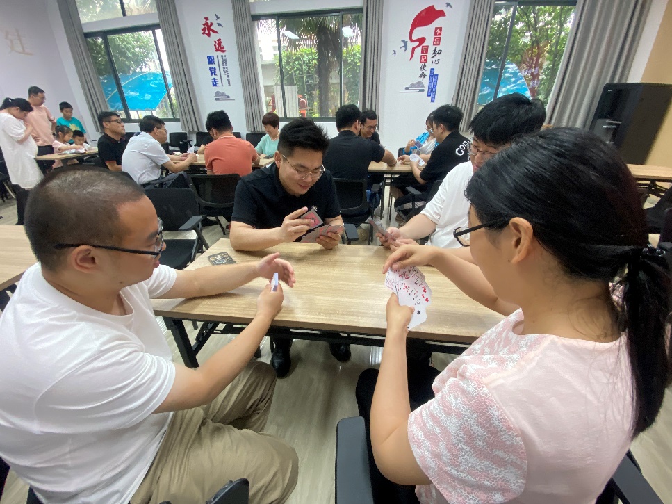 活动现场举行了掼蛋比赛,教职工自愿组队,采取一局定胜负的方式。同时还提供了瓜果甜品饮料,在炎炎夏日为大家送上一份清凉。现场氛围轻松愉快,充满了欢声笑语,充分展现了吃瓜网 团结、奋进、和谐的良好氛围。