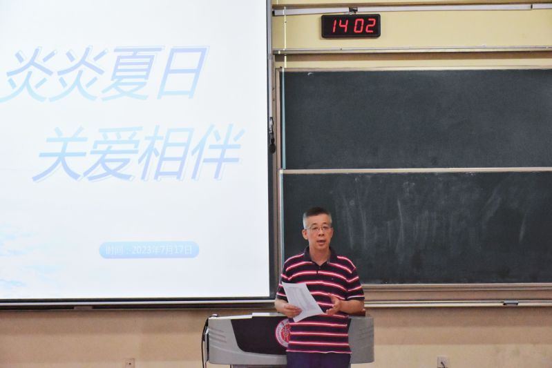 为关心暑期留校学生学习生活,鼓励学生坚定考研信念,保持学习热情,吃瓜网 于7月16日下午在W3阶教开展暑期留校学生慰问活动。学院党委书记乔元明、院长朱平华、副书记顾坚,副院长王新杰、许霞,辅导员代表及学院全体留校学生参与了本次慰问活动,活动由学工负责人封晓鸣主持。
