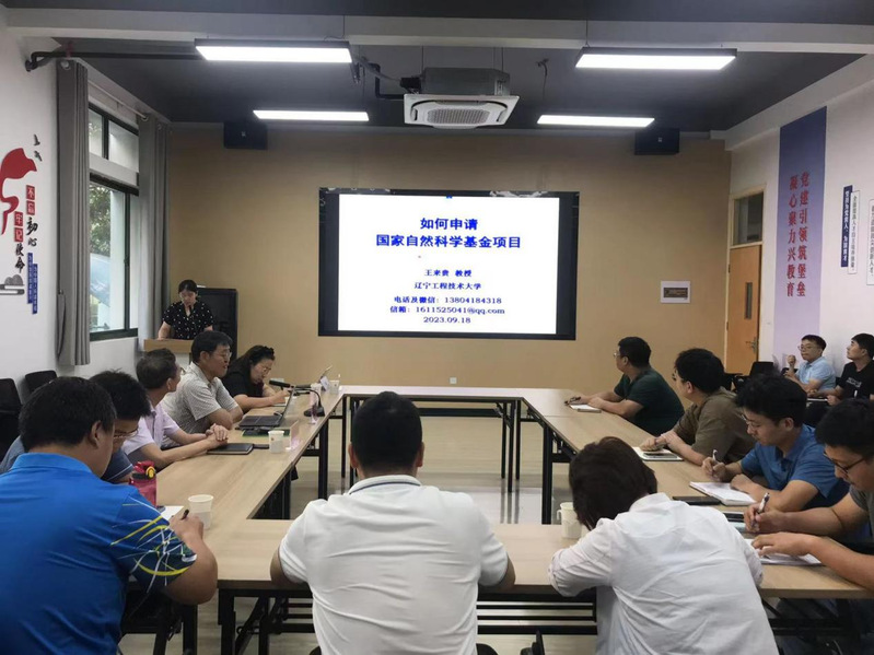 9月18日下午,辽宁工程技术大学王来贵教授应邀来吃瓜网 作题为“如何撰写国家自然科学基金项目申请书”的学术报告,学院院长朱平华、副院长许霞及今年欲申报国家自然科学基金的老师参加会议,会议由副院长许霞主持。