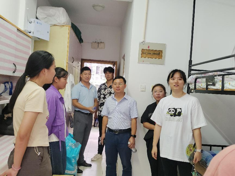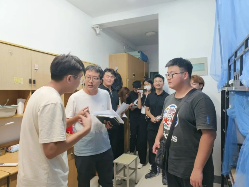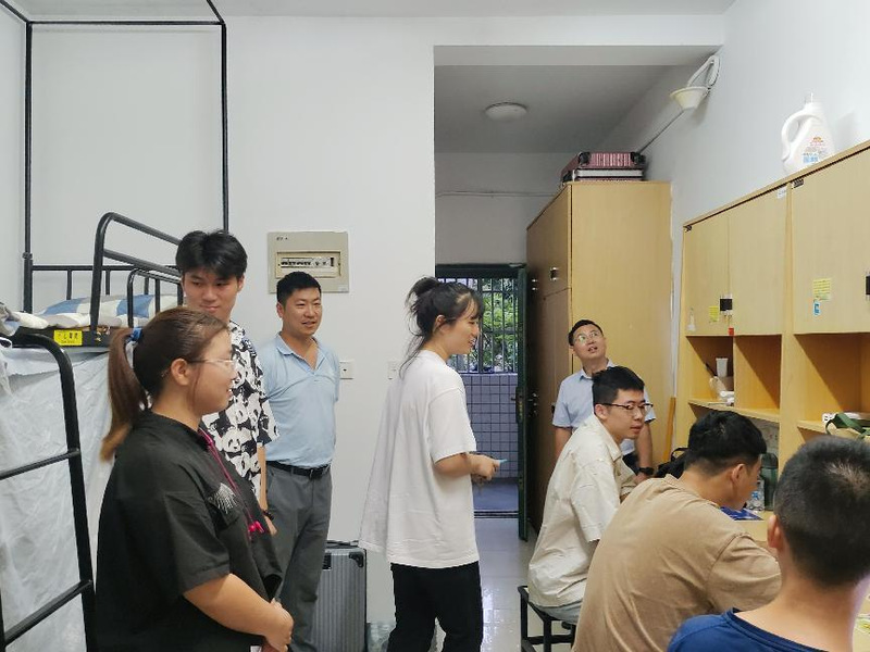 走访中,一行人来到了研一楼男生宿舍和三号楼女生宿舍,在查看了基础设施、环境卫生等情况后,开始进入学生宿舍。他们细致耐心、亲切和蔼地逐一走访,将学院的问候和对新学期的期许带给每一位新生,教师们与新生们亲切交谈,全面细致地了解新生的基本情况,对于不同省份新生的家乡特色、风俗特色进行了交流,并对来自五湖四海的室友之间的相互磨合提出了宝贵建议。教师们鼓励大家在积极融入集体,在未来的学习生活中成为一名有能力、有担当的城建学子,同时提醒大家主动规划未来,注重身心健康,积极参加比赛和活动,不负韶华,不负理想。