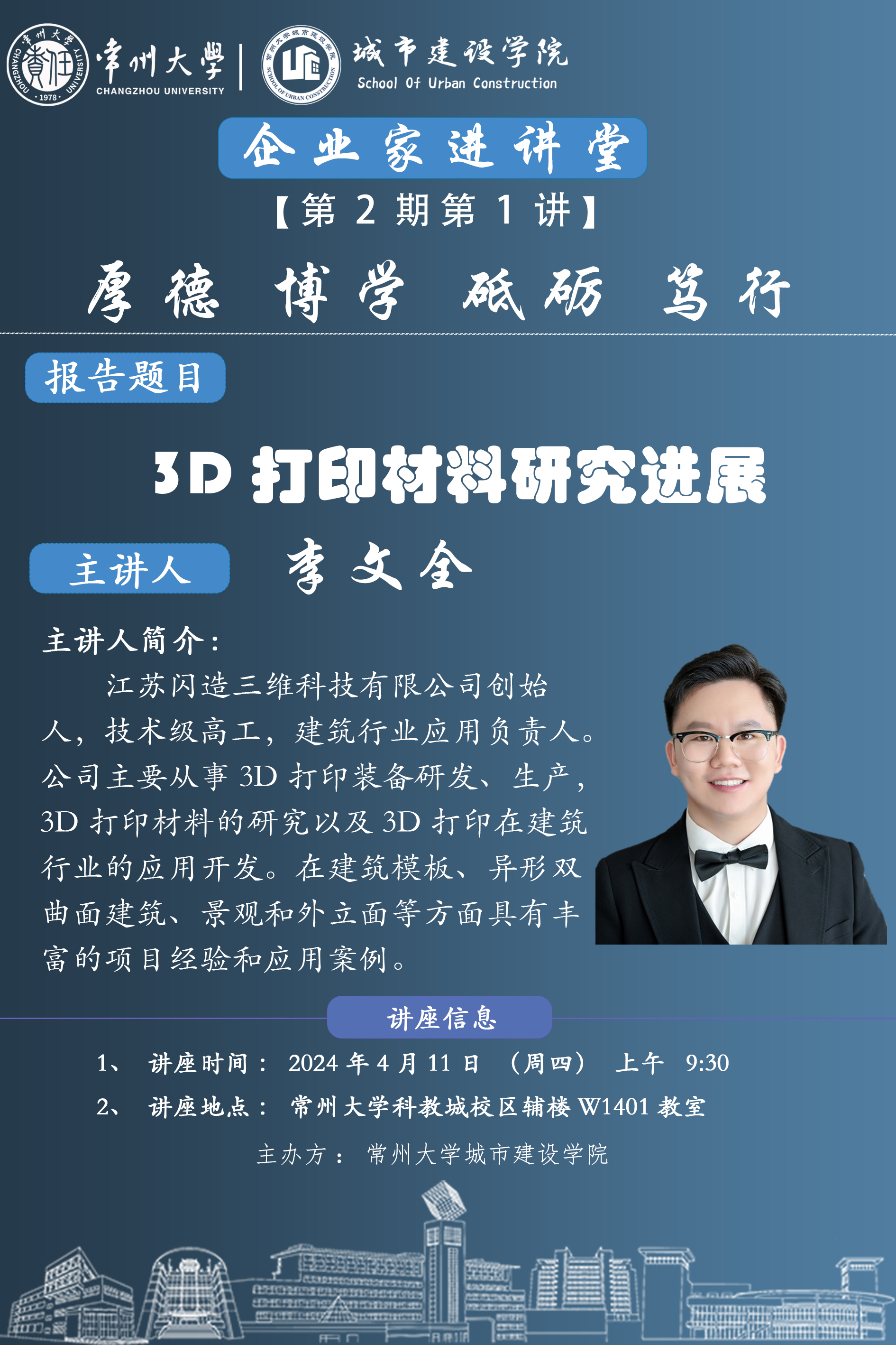 【企业家进讲堂】第2期第1讲:3D打印材料研究进展