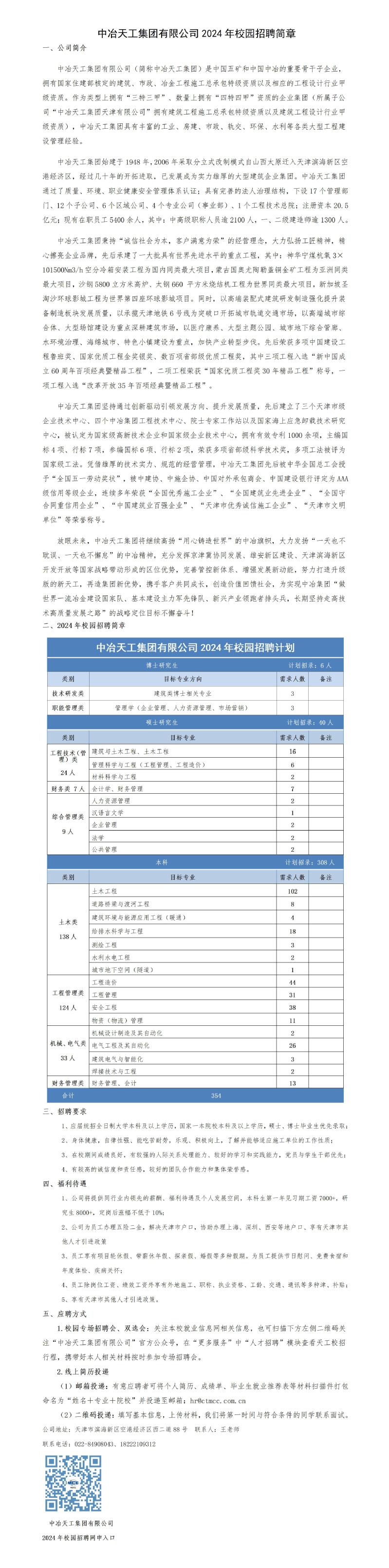 招聘[2024068]中冶天工集团有限公司2024年校园招聘简章