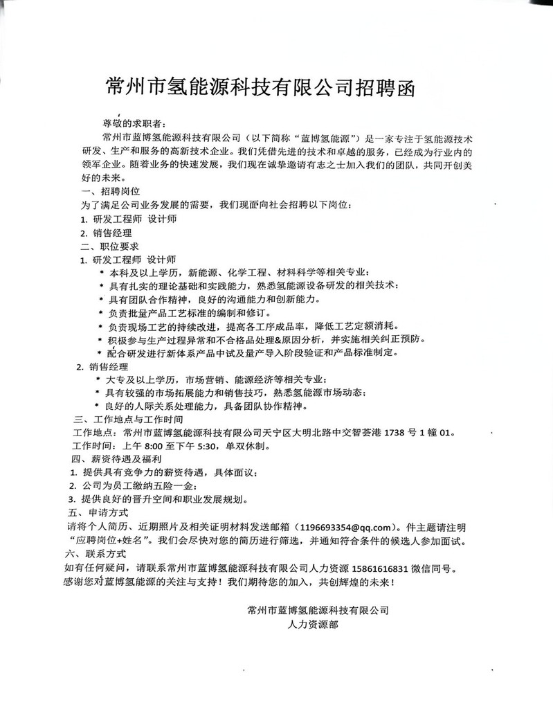 招聘[2024075]常州市氢能源科技有限公司2024春季校园招聘