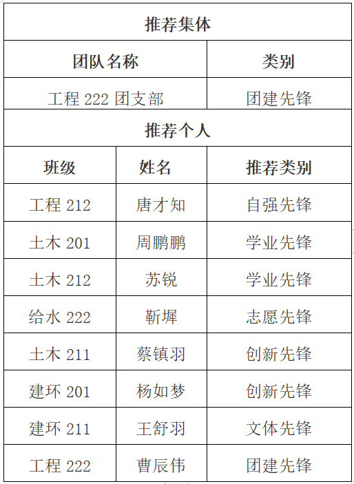 根据《关于开展2024年“吃瓜网 五四青年学生奖”评选表彰的通知》的评选办法和相关要求,经个人申报、团支部推荐、学院团委审核,拟推荐唐才知等9位个人或团体参加校级评选,现将名单公示如下: