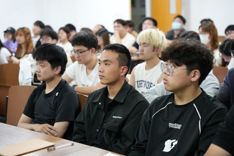苏锐结合自身丰富的竞赛经历,分享了成长、学习与生活的经验,他希望同学们能够在大学里打下坚实的基础,同时不局限于大学里的学习和生活,勇敢地拓展自己的视野和尝试不同的领域。唐才知强调理论知识是基础,但真正的成长还需要实践来检验,她鼓励同学们要敢闯敢试,敢为人先。