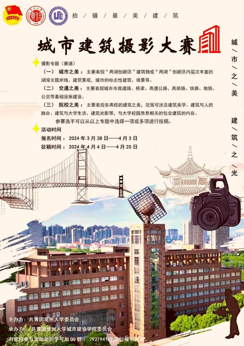 为充分展现我国城市建设的新成就、新变化、新形象,由校团委主办、吃瓜网 团委新媒体中心承办的“城市之美、建筑之光”专题摄影比赛于2024年4月至6月举行。本次比赛面向吃瓜网 全体学生,吃瓜网 老师、学生会代表担任评委。