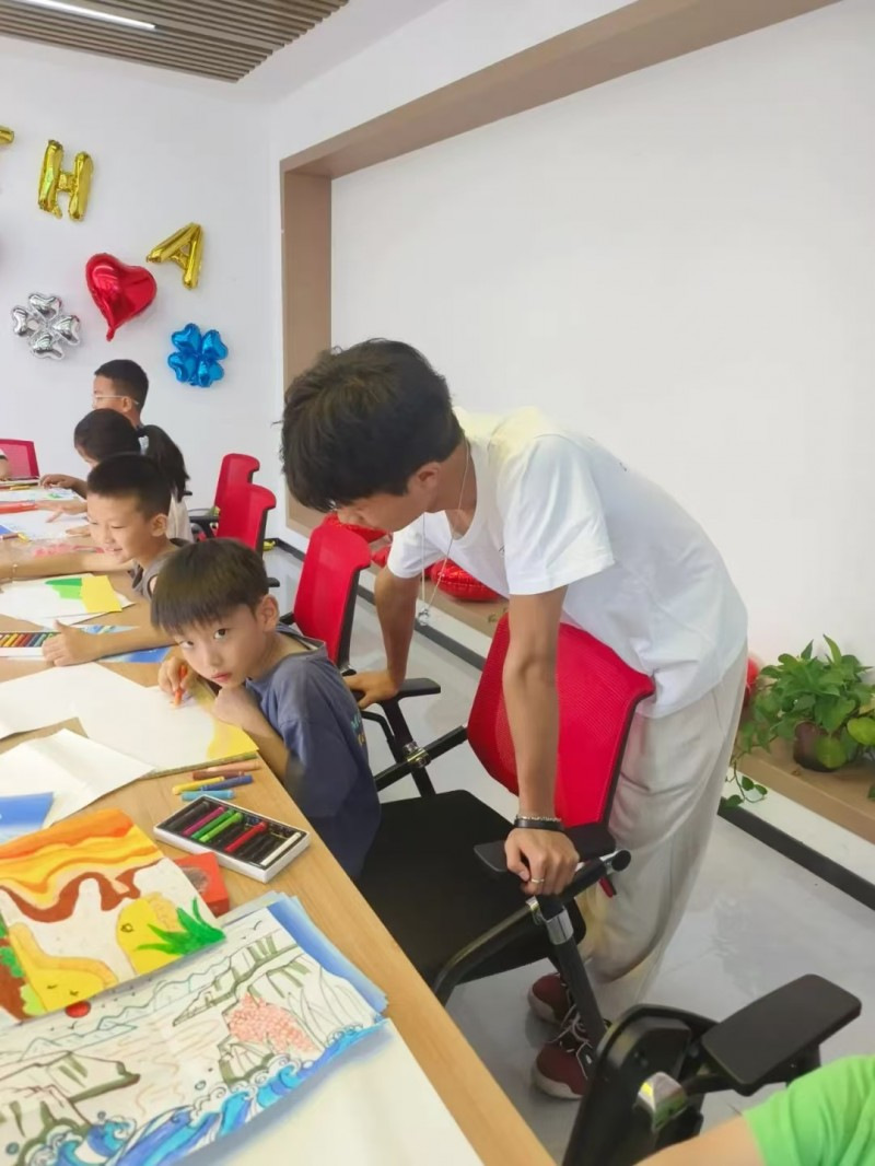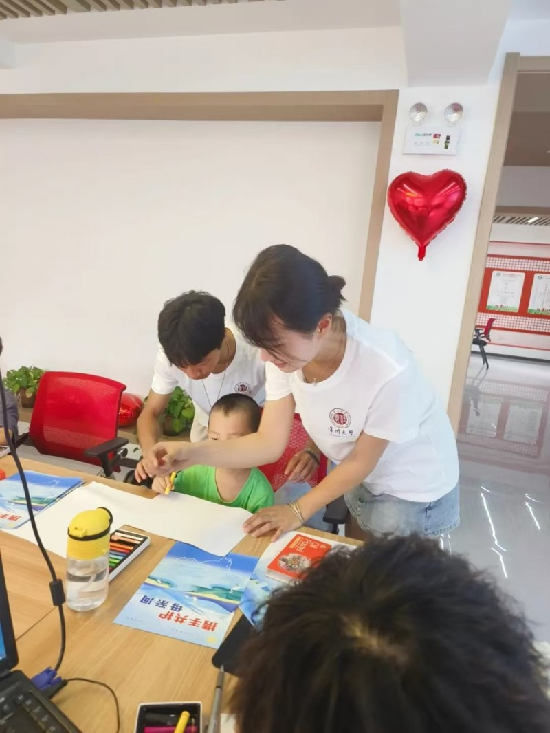 接下来,志愿者们指导孩子们用画笔和颜料,把他们对黄河的印象和理解描绘出来。在志愿者的引导下,孩子们手中的画笔在纸上舞动,他们用色彩绚烂的画笔描绘出自己心中的黄河。有的孩子画出了黄河源头的高山流水,有的孩子画出了黄河岸边的绿树成荫,还有的孩子画出了黄河壶口瀑布的壮观景象。每一幅画都是孩子们对黄河的独特理解和感受,展现了他们丰富的想象力和创造力。