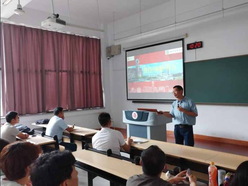 随后,陈孚江简要介绍了全国建环专业的情况,重点介绍了常大建环专业“责任·博爱·有为” 的专业文化、人才培养目标制定的背景、师资、“122”人才培养模式和历届学生的就业升学情况,解读了人才培养方案和选课指导原则和注意事项。