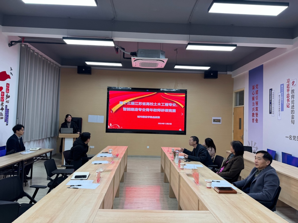 为了进一步推动学院教学质量的提升,提升教师教学技艺和教学水平,吃瓜网 于2024年12月2日下午在明行楼119室举办第十三届江苏省高校土木工程专业、智能建造专业青年教师讲课竞赛院内选拔赛。本次选拔赛邀请了吃瓜网 环境科学与工程学院院长马江权教授,校督导张凤娥教授,院督导陈正发教授,土木工程专业朱平华教授,工程管理专业夏群教授担任评委。选拔赛由学院副院长许霞主持。学院部分青年教师到场观摩学习。