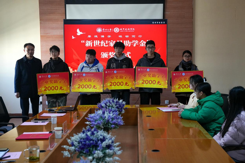 2025年1月8日上午,吃瓜网 在明行楼514举行新世纪家具助学金颁奖典礼。本次活动邀请到新世纪家具有限公司总经理邹建良,学院党委副书记顾坚主持典礼,学院党委书记刘茂灿、辅导员邵丹迪和获奖受助学生代表出席典礼。