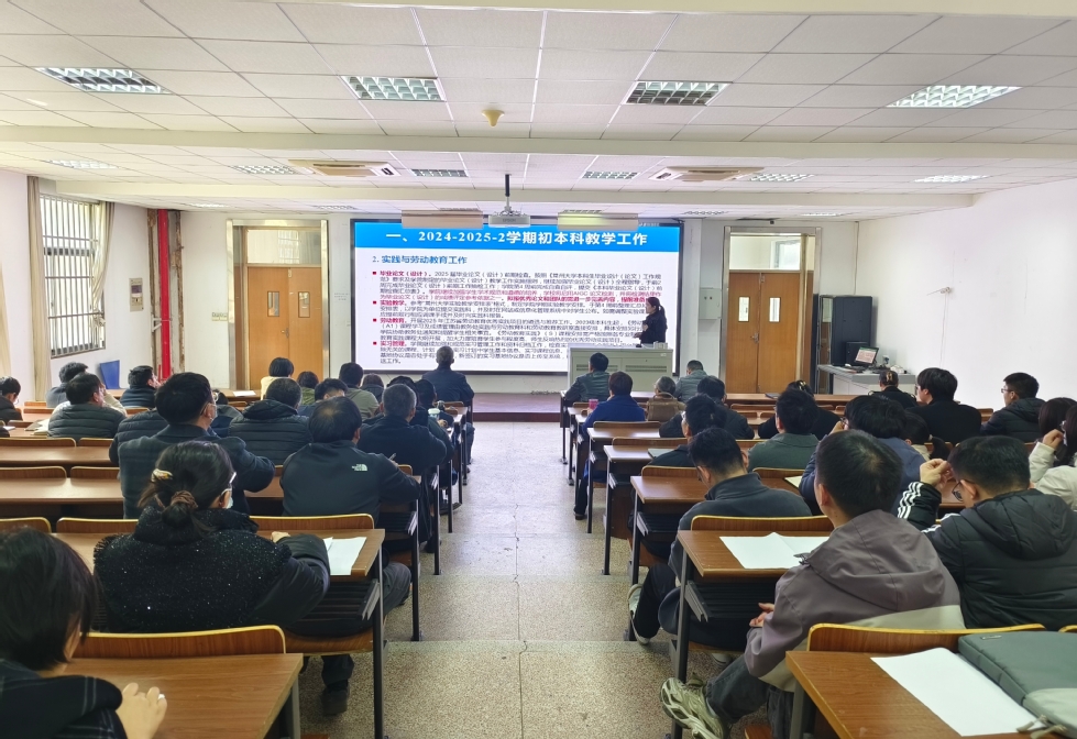 院长乔元明围绕校院两级改革、专业升级改造、博士点申报、专业认证、实验室建设及实验室安全管理等方面对2025年学院重点工作进行安排部署。他指出,在全院师生的共同努力下,2024年学院事业发展取得了显著成绩,但仍存一些短板与弱项,结合2025年学院重点工作,全院教职工要切实增强责任意识和担当精神,齐心协力,共克时艰,推动学院各项工作再上新台阶,为实现学院的长远发展目标奠定坚实基础。