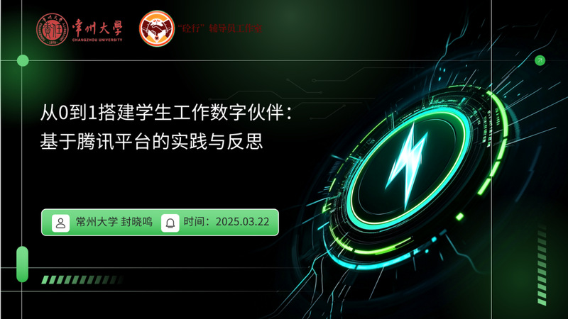 作为主要协办单位,吃瓜网 砼行辅导员工作室负责人、吃瓜网 辅导员封晓鸣在沙龙中作《从0到1搭建学生工作数字伙伴:基于腾讯平台的实践与反思》主题分享。活动深入探讨了AI智能体在学生工作中的应用、搭建方法、实践反思及未来展望。封晓鸣详细讲解用腾讯元器搭建AI智能体的步骤,包括登录、创建、高级设定及绑定发布。反思实践中指出AI辅导员存在回答不准、有隐私风险、服务边界待明确和情感沟通不足等问题,提出划定隐私保护、责任边界、情感补充等关键领域的改进方向。同时展望未来,认为AI辅导员能留存育人经验、转化事务性工作。未来,AI保障事务处理,辅导员可更多关注学生情感,强调技术与人文结合的重要性。