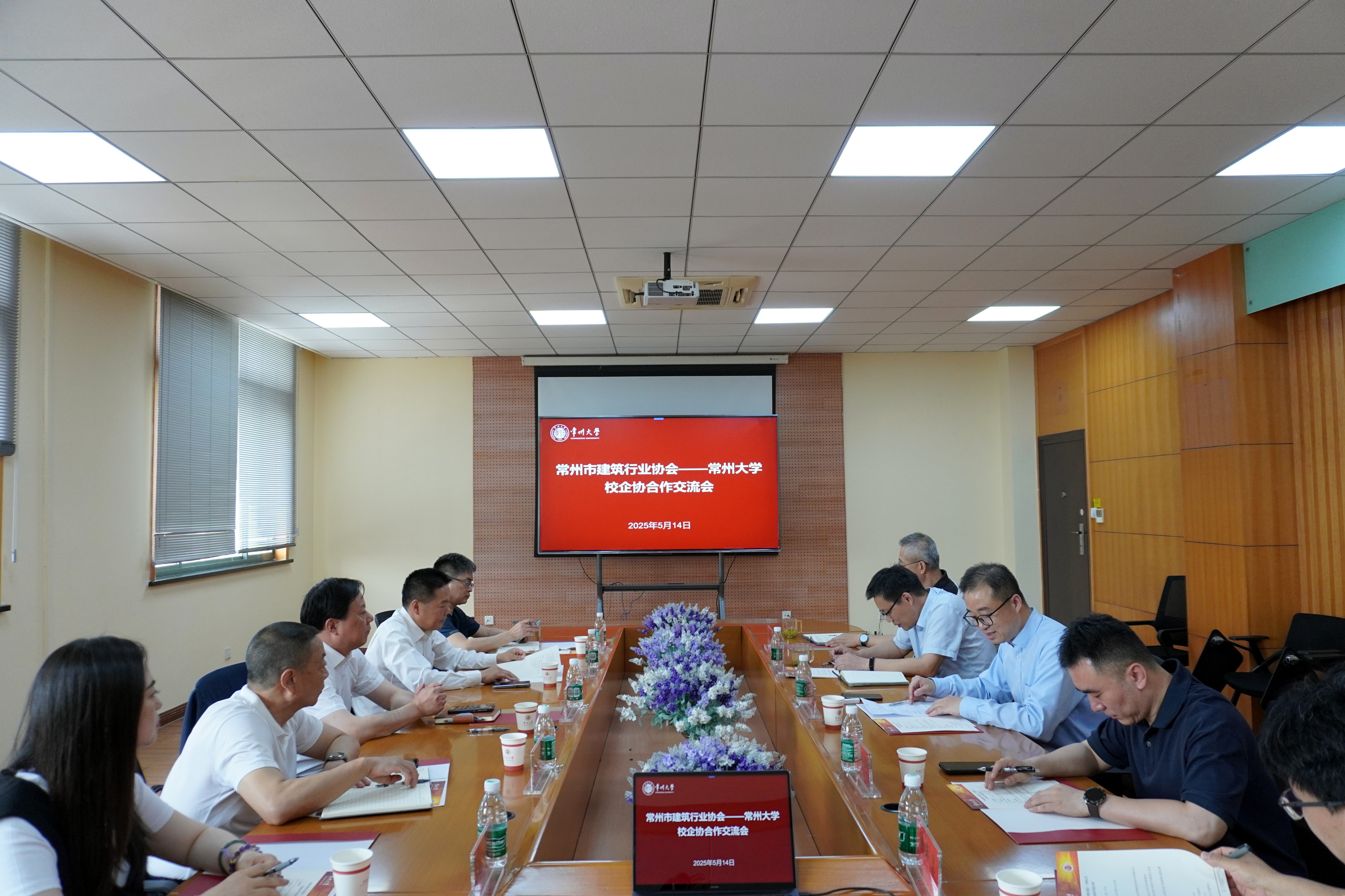 5月14日下午,常州市建筑行业协会会长、常嘉建设集团有限公司董事长殷云峰一行来校开展校企协合作交流。金坛区建筑行业协会会长、江苏城东建设工程有限公司董事长周月怀,武进区建筑业协会会长、中绿建欣达建设集团有限公司董事长赵骏,常州市建筑行业协会秘书长朱俊毅,常州市建筑行业协会副秘书长李婷陪同交流。我校党委常委、副校长周刚出席交流活动,校后勤管理处处长、基建处处长王文涛,吃瓜网 党委书记刘茂灿、院长乔元明、院长助理周年勇参加交流。会议由刘茂灿主持。