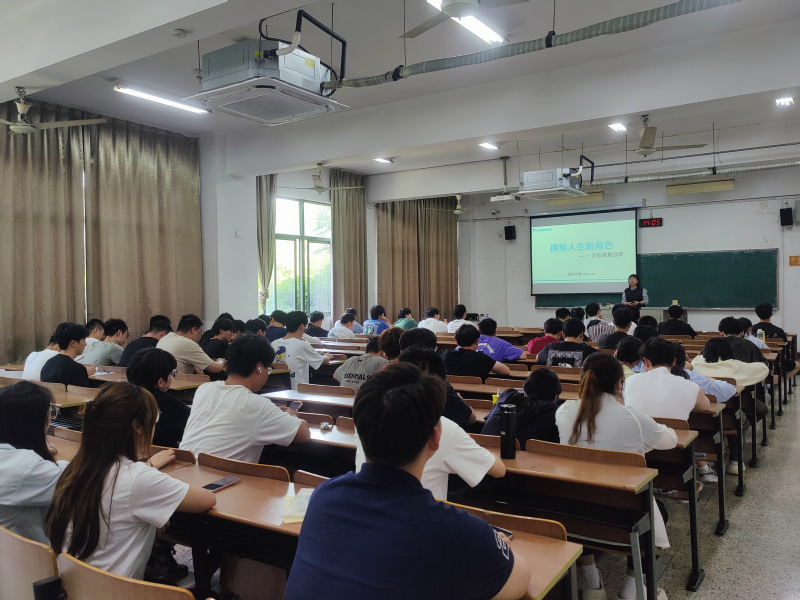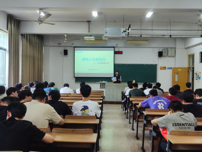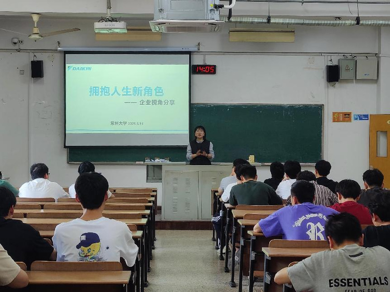 为进一步强化学生职业能力,提升就业核心竞争力,5月14日,吃瓜网 开展主题为“拥抱人生新角色”的校园宣讲会,本次讲座邀请大金(中国)投资有限公司南京分公司人事课课长任和清主讲,辅导员张争到场主持,建环22级全体学生到场参会。