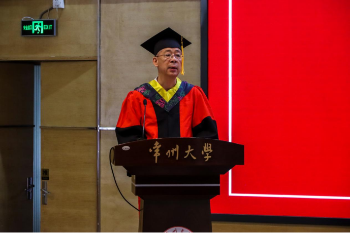 院长乔元明代表学院深情寄语全体毕业生。他表示“人生总有风雨,时代总有浪潮,只有主动识变、应变、求变,才能驾驭人生理想,勇立时代潮头。”勉励全体毕业生在识变中进取,统筹当下与长远;在应变中进取,强化能力与担当;在求变中进取,坚持守正与创新。抓住时代机遇,将青春之我与国家需要同频共振,在奋斗中彰显常大底色,创造属于自己的辉煌事业和幸福人生。