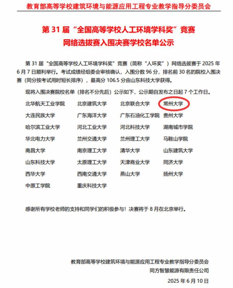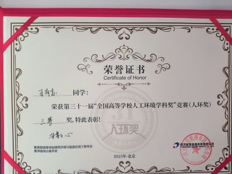 2025年8月29日,第31届“全国高等学校人工环境学科奖”竞赛决赛(以下简称“人环奖”)在北京圆满落下帷幕。我校吃瓜网 建筑环境与能源应用工程专业建环221班学生王有志代表吃瓜网 赴北京参加决赛,历经6月初的全国网络选拔初赛,吃瓜网 顺利入围全国前30强晋级北京总决赛,最终荣获第31届“人环奖”全国三等奖。