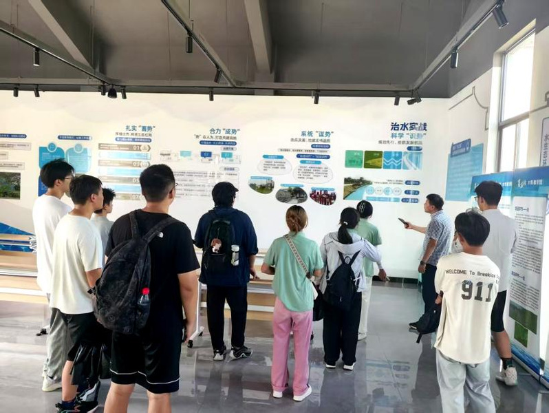 7月2日,实践队员赴湟里镇葛庄水情教育基地研学。在专业讲解中,队员们系统了解大运河水资源管理历史与当代挑战,重点考察河道清淤、生态修复等治理技术与成果。通过实地观摩和数据图表分析,队员们深刻理解了“绿水青山就是金山银山”理念在河湖保护中的实践意义,强化了运用专业知识守护水生态的责任感。