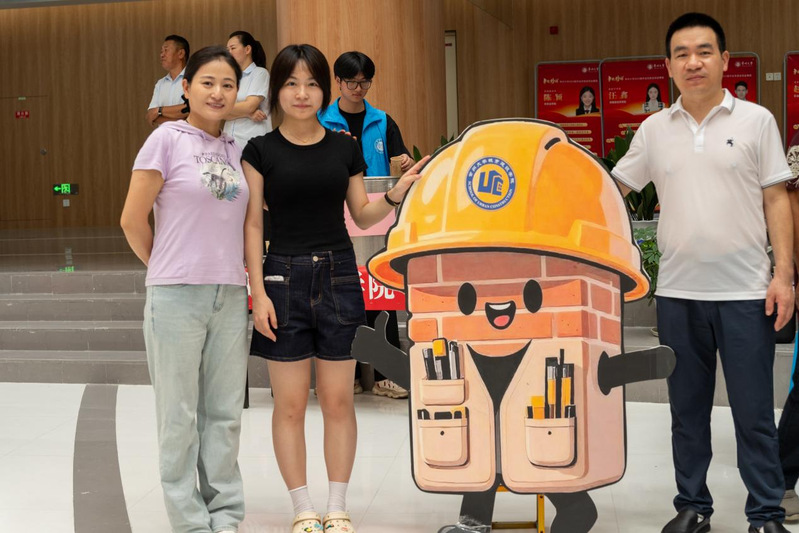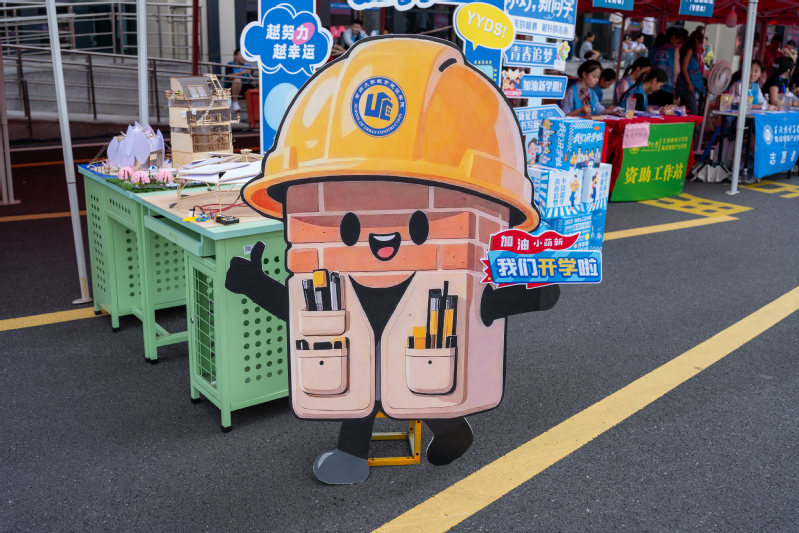 今年的新生大礼包诚意满满,学院精心定制了2025级入学纪念徽章,配套“城宝”卡套和钥匙扣,解锁了“城宝”们大学生活的第一份仪式感。在报到处,学院还设计了“你好 新同学”的立体打卡点,新生与家长笑意盈盈定格入学瞬间;那个头戴工程安全帽、憨态可掬的“砖块”卡通形象立牌旁,不少新生驻足合影,让“城建特色”成为初入校园的记忆符号。