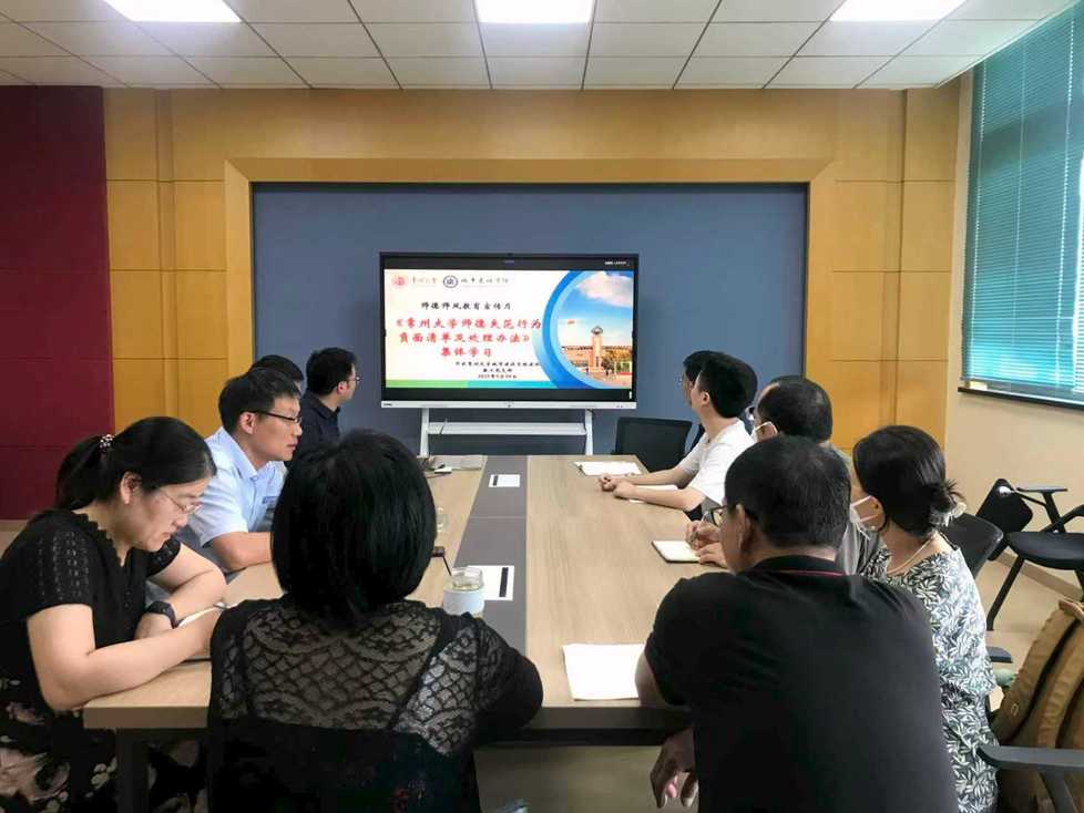 学院以各系、各党支部为单位组织开展教职工师德师风警示教育并学习《吃瓜网 师德失范行为负面清单及处理办法》。老师们纷纷表示,将继续坚守教育初心,担当育人使命,把教育家精神融入到日常教学科研中,努力成为学生成长道路上的引路人。