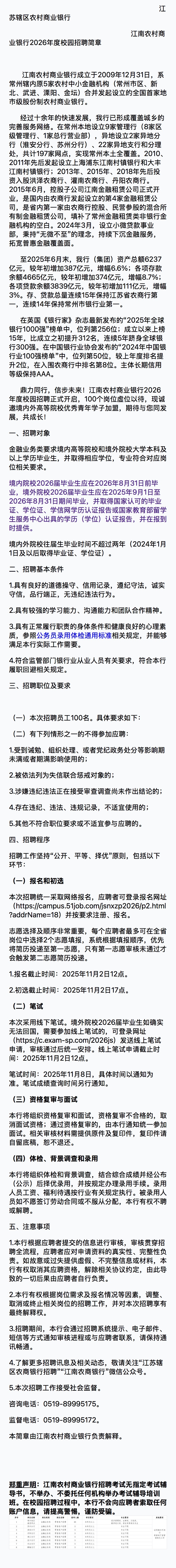 招聘宣讲会[2025038]江南农村商业银行2026年度校园招聘