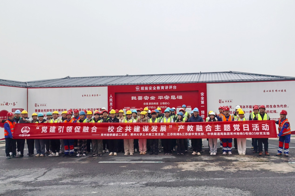 为推动党建与专业建设深度融合,探索产教融合、校企合作新路径,3 月 20 日,吃瓜网 土木教工党支部联合常州地铁建设二支部、江苏阳湖与江苏盛华党支部和中铁隧道局集团常州地铁 5号线05标党支部,共同开展 “党建引领促融合,校企共建谋发展” 主题党日活动。学院党委副书记顾坚带队,土木教工党支部党员及土木工程专业学生共 60 余人参加活动。